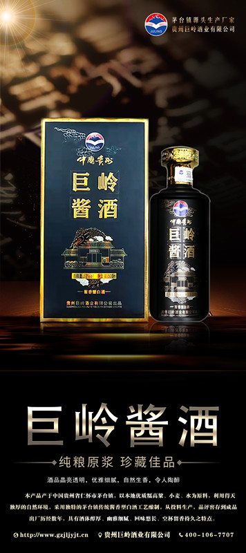 贵州巨岭酒业有限公司,座落于闻名世界的古镇,国酒之乡“茅台镇”。与“国酒茅台”共享得天独厚的气候、土壤、水源、以及微生物群等自然资源;《巨岭酒业》老作坊前身“巨岭烧坊”,经过多年的传承,秉承先辈们代代相传的古法酿造工艺,历经几代人的延续和酿酒发展,奠定了《巨岭酒业》发展的坚实基础。 作为贵州茅台镇本土规模企业,《巨岭酒业》拥有传统发酵窖池200余口,年产优质酱香白酒近2600多吨,储酒能力12000多吨;并配有3条现代化包装生产线;公司现有职工300多名,有酿酒师15人,技术人员22人,本科以上学历管理人员12人,大专学历工作人员78人,是茅台古镇酱酒传承的白酒知名企业。 《巨岭酒业》励精图治与精益求精的发展理念,已成长为行业认可、社会公认的“规模酿酒企业”,酒业协会副会长单位”和“爱心企业”。 公司现在拥有:《巨岭酱酒》,《岭台》,《玉岭烧坊》,《酒缘》《情满壶》等上百个品牌产品,公司注重品牌发展,以《巨岭酱酒》为品牌核心,以个性化定制和尊贵封藏为营销模式,制定出“一核两柱”的销售模式?!毒蘖虢淳啤纷魑放浦魈澹隼┱故谐〉呐磐废确妫季?,点线结合,网状布局,包括《巨岭》系列产品.... |